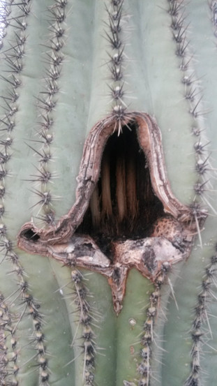 Enter unexpectedly from Stage Left: Saguaro. First, ya gotta say it correctly: Sa-wa-row. These elegantly tapered, giant cactuses are not only the iconic species of our Sonoran Desert ecosystem but also the great Mother of our desert. They’re a keystone species who - from tiny seed to graceful behemoth to decaying windfall - provide food, moisture, and shelter for an incredible number of other Sonoran Desert species who simultaneously help the Saguaro survive and thrive.