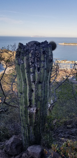 For a Saguaro, trauma in the forms of lightening, frost, drought and gunshots cause each one to respond protectively with scars and scabs, twists and turns. For a human, our learned responses to past trauma (insecurity, neglect, and physical or emotional abuse) result in our individual personalities. The big Human and Saguaro picture is this: We both need to live in communion with our friends/neighbors and we both suffer terribly when isolated from them. We were thinking of selling No Pants Ranch to afford living and working on Triplefin, but we could not bear the thought of leaving our Saguaro kin and their community of interdependent plants and animals vulnerable to careless unconcern or rapacious extraction.
